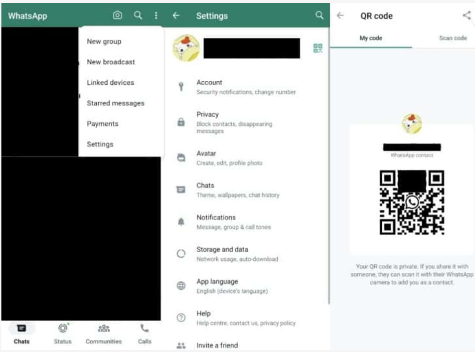 વોટ્સએપ વપરાશકર્તાઓને તેમની વિગતો શેર કરવા દે છે અને QR કોડ સ્કેન કરીને અન્યને સંપર્ક સૂચિમાં ઉમેરવા દે છે.