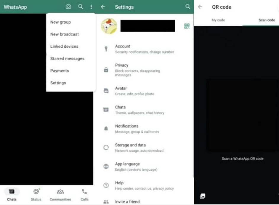 તમારો WhatsApp QR કોડ શોધવા અને શેર કરવા માટે, તમારા ફોન પર એપ્લિકેશન ખોલો અને સ્ક્રીનની ઉપર જમણી બાજુએ આવેલા ત્રણ-બિંદુ મેનૂ પર ટેપ કરો.